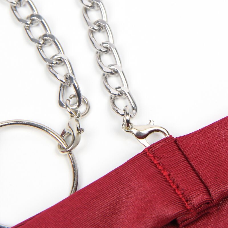 Lo más distintivo de este babydoll son los agarres de brazos incluidos, que están hechos de imitación de cuero. Estos agarres añaden un elemento de bondage y fetichismo, permitiendo que tus brazos se mantengan sujetos de una manera seductora y provocativa.