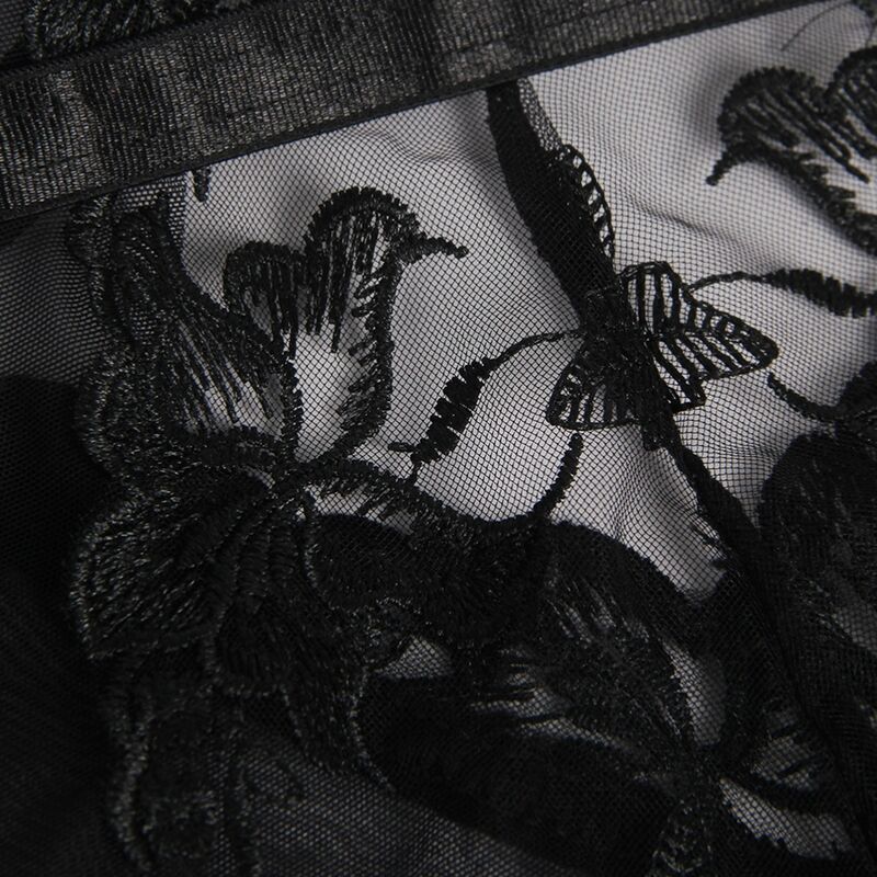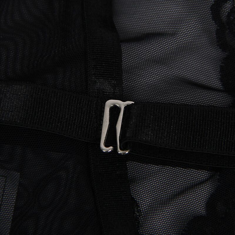 Este body es una pieza única y seductora que combina estilo y comodidad. Confeccionado en un tejido de malla con patrones florales, este body presenta un diseño sin mangas que resalta tus hombros y brazos de manera elegante. Incorpora un soporte con aros debajo del busto para realzar y definir tu figura.