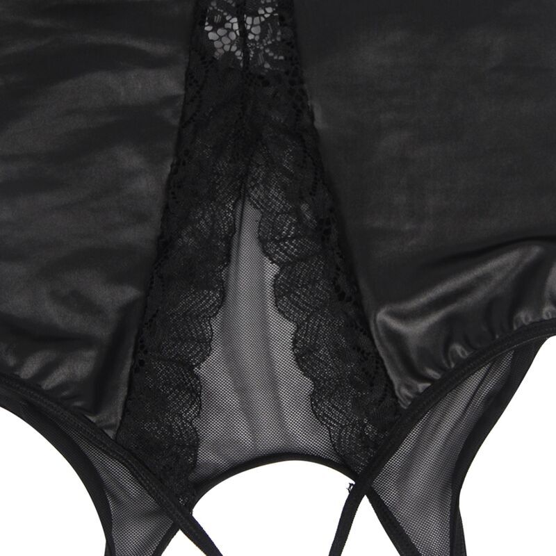 Este teddy es una pieza de lencería provocativa y sensual con un diseño de cuero negro que ofrece un estilo audaz y seductor. Fabricado con un 95% de poliéster y un 5% de spandex, proporciona una sensación suave y cómoda en la piel, mientras que el spandex garantiza un ajuste favorecedor y cómodo.
