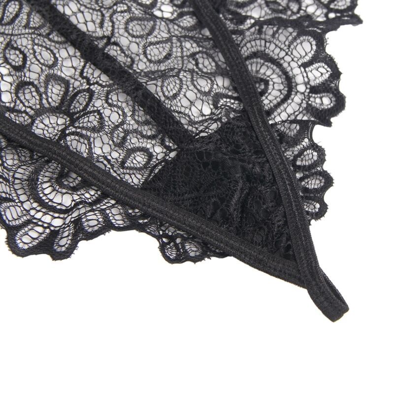 El conjunto presenta un encanto de encaje exquisito que resalta la feminidad y la seducción, con un escote profundo en forma de V que añade un toque de provocación sutil. El color y la textura del encaje dan al conjunto un aspecto delicado y sofisticado, perfecto para momentos íntimos especiales.