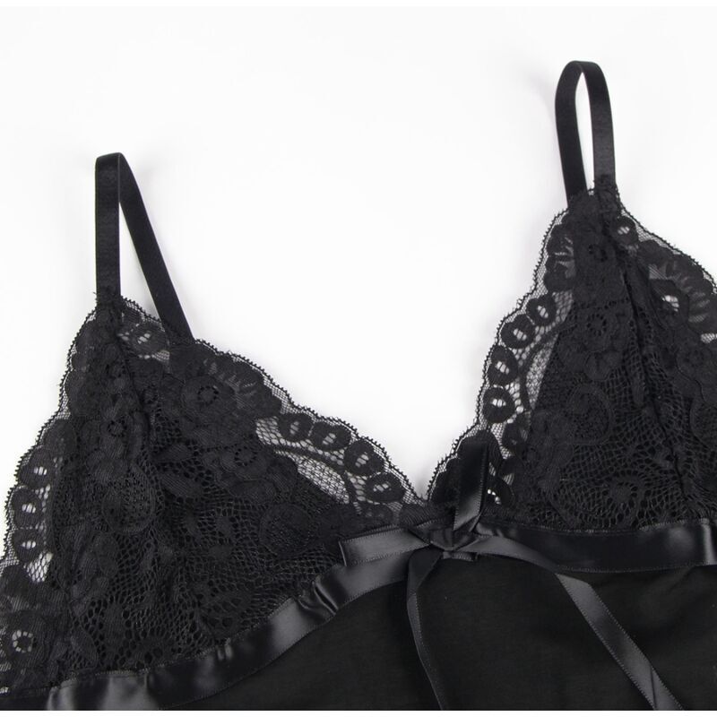 Con una talla XS-S, está diseñado para ofrecer un ajuste cómodo y favorecedor a quienes prefieren una prenda más ceñida. El conjunto incluye un G-string a juego que complementa el babydoll, creando un conjunto completo y armonioso.