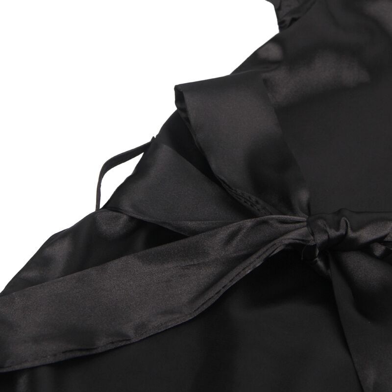 Envuélvete en un lujo exquisito con nuestro conjunto de Bata Corta de Seda con Mangas Largas y Tanga a juego. Esta bata corta es una expresión de elegancia y sensualidad, confeccionada con un material de primera calidad que combina un 95% de poliéster para una suavidad incomparable y un 5% de spandex que proporciona un ajuste cómodo y elástico.