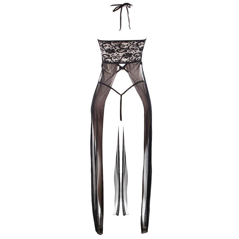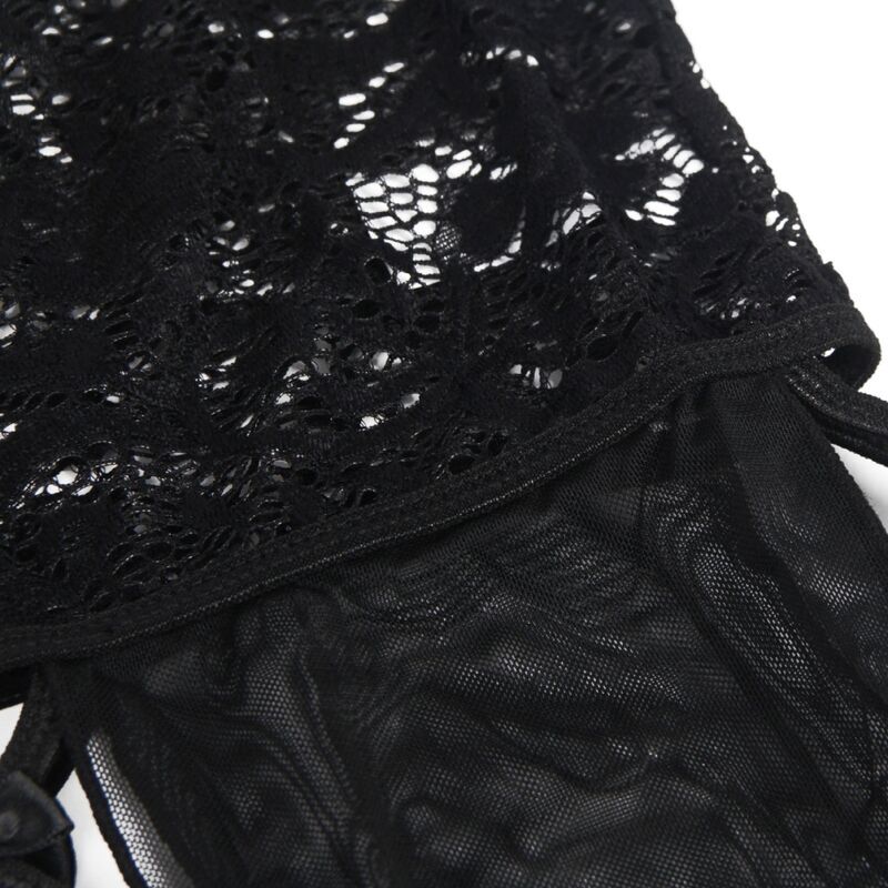 Este conjunto de top con tul y tanga es una pieza de lencería elegante y seductora, perfecta para una noche especial. El top presenta un diseño de encaje negro hueco que agrega un toque de sensualidad y sofisticación. Fabricado con un 95% de poliéster y un 5% de spandex, garantiza comodidad y un ajuste perfecto.