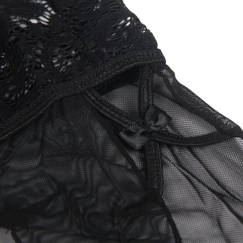 El tul utilizado en el diseño proporciona un aspecto etéreo y delicado, creando un contraste encantador con el encaje. La combinación de estos materiales crea una sensación suave y sedosa contra la piel, ideal para momentos íntimos.