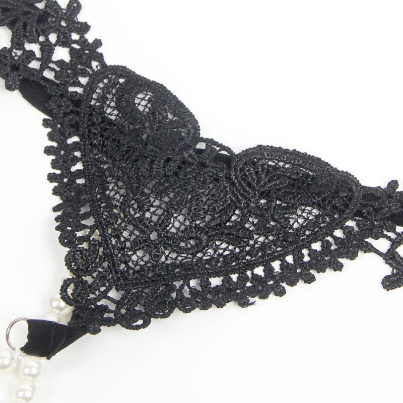 BRUMA SECRET - T100 HEART-SHAPED LACE AND PEARL THONG BLACK ONE SIZE