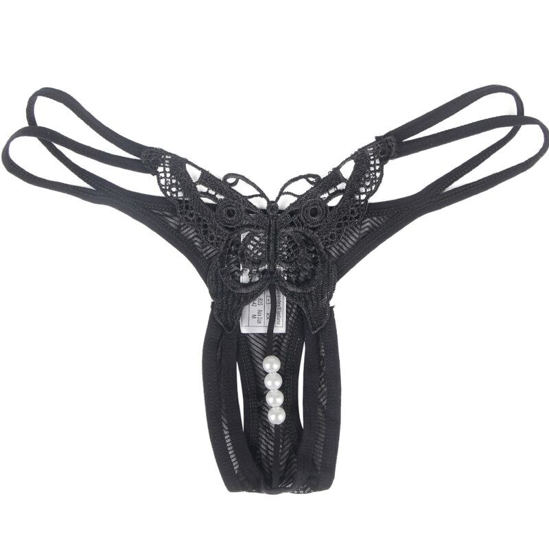 Explora tu lado más seductor con nuestro Tanga Negro con Mariposas y Abertura.