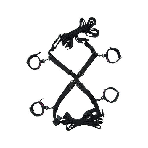 Transforme sua cama em um playground de bondage com o Scandal® Over the Bed Cross. Totalmente ajustável para se adaptar a qualquer tamanho de cama, este sistema de contenção possui tiras duráveis, fechos giratórios e algemas macias para pulsos e tornozelos que mantêm seu parceiro firmemente aberto e exposto. Seja provocando, acariciando ou dominando, o design em cruz garante acesso irrestrito a cada curva e desejo.