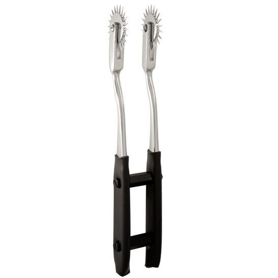Cada pequeña rueda presenta una serie de púas puntiagudas que se deslizan suavemente sobre la piel, provocando una placentera piel de gallina y aumentando la sensibilidad para mejorar el impacto de cada toque íntimo. Al conectarse con contactos bipolares, ambas ruedas cobran vida con una sensación de hormigueo para prolongar la efectividad de sus formas de burla.