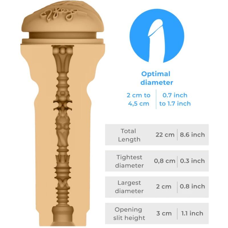 Masturbator FeelReya wykonany jest z miękkiego, przypominającego skórę materiału, który został uformowany z najbardziej intymnych części ciała Reyi, aby zapewnić Ci NAJBARDZIEJ realistyczną interakcję seksualną z Twoim ulubionym twórcą treści.