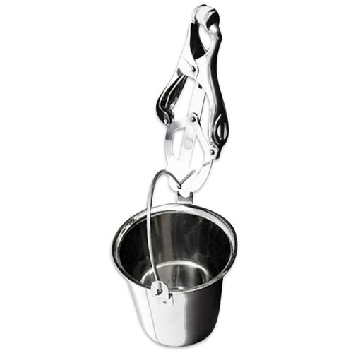 Las puntas de goma aseguran que todo el dolor sea en forma de placer y que mantengan su agarre. Para aumentar el peso, simplemente llena los pequeños cubos colgantes con agua, lubricante, arena, piedras o lo que sea que tu mente malvada pueda proponer.