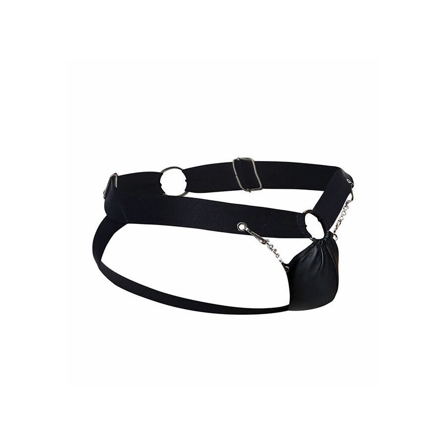 The Chainlink Jockstrap is made of strong faux leather in sleek black. With minimal coverage at the back, sweat can evaporate more freely offering the wearer a more comfortable fit. A chain-link pouch at the front supports the penis without scrimping on sex appeal, whilst wide straps sit on the hips for a supportive finish.