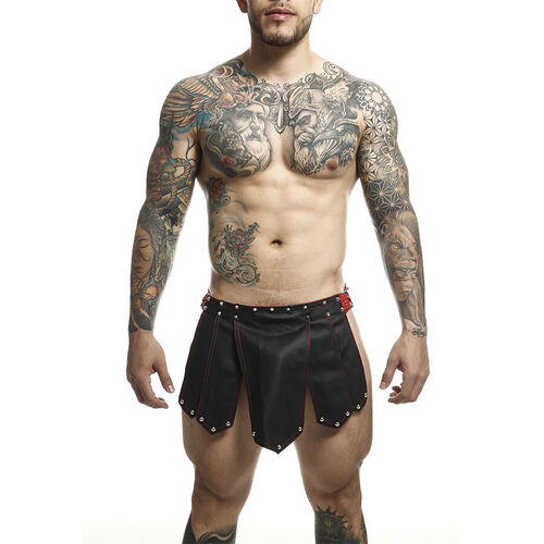 Stuzzica il tuo partner nel modo migliore possibile con la gonna in pelle da guerriero romano. Aperta sui lati. Design triangolare sul davanti e sul retro. È un'aggiunta comoda e funzionale alla tua routine da camera da letto. Completamente regolabile e realizzata in resistente similpelle, indossala a vita bassa per un costume a cui non potrà resistere!