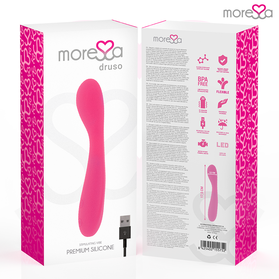 MORESSA - DRUSO MASAJEADOR DUO PUNTO G Y SUERO PELVICO PREMIUM SILICONE RECARGABLE