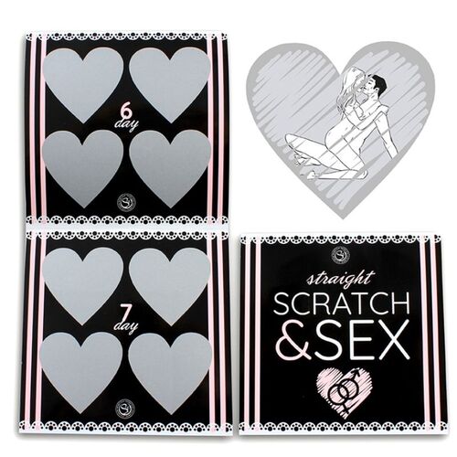 Możesz dokończyć tygodniową partię, a następnie zdrapać od nowa, odkrywając pozostałe pozycje, co pozwoli ci cieszyć się 4 tygodniami gry. Scratch & Sex występuje w trzech różnych wersjach, po jednej dla każdego typu orientacji seksualnej. W tym przypadku rysa jest PROSTA